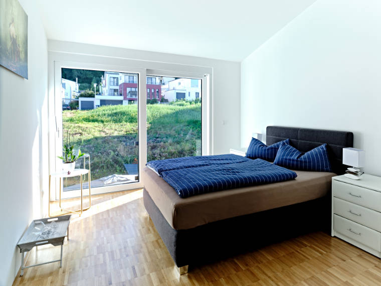 Die freundlichen Räume bieten eine tolle Atmosphäre für einen entspannten Aufenthalt. Falls Sie gemeinsam kochen oder eine gesellige Runde bewirten möchten, laden die bestens ausgestattete Küche mit angeschlossenem Wohnraum dazu auf jeden Fall ein. Erholsame Auszeiten bieten die drei Schlafzimmer im zweiten Stock: Alle Räume sind für eine wohltuende Nachtruhe mit Boxspring-Doppelbetten eingerichtet. Zwei der Schlafzimmer bieten einen wunderbaren Blick ins Grüne, das dritte Schlafzimmer bietet vom Balkon aus einen spektakulären Blick über den Bodensee. Im Sommer lädt die Terrasse unseres modernen Ferienhauses zu warmen Grillabenden und lauschigem Verweilen ein.